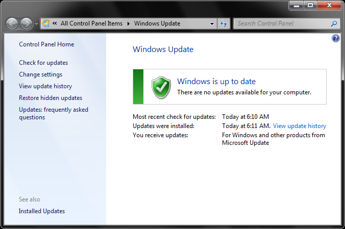 فرض کنید سیستمی با ویندوز ۷ یا ۸ داریم که دائما با اتصال به اینترنت آپدیت شده و هم اکنون به روز است.